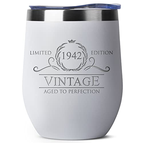 houzz 80th Birthday Gifts for Women Men - 1942 12 oz White Stemless Wine Tumbler - 80th Birthday Decorations - Birthday Gifts for 80 Year Old Man Dad Grandpa - Vintage 80th Birthday Idea Present for Women
